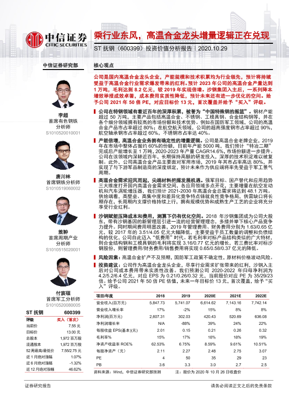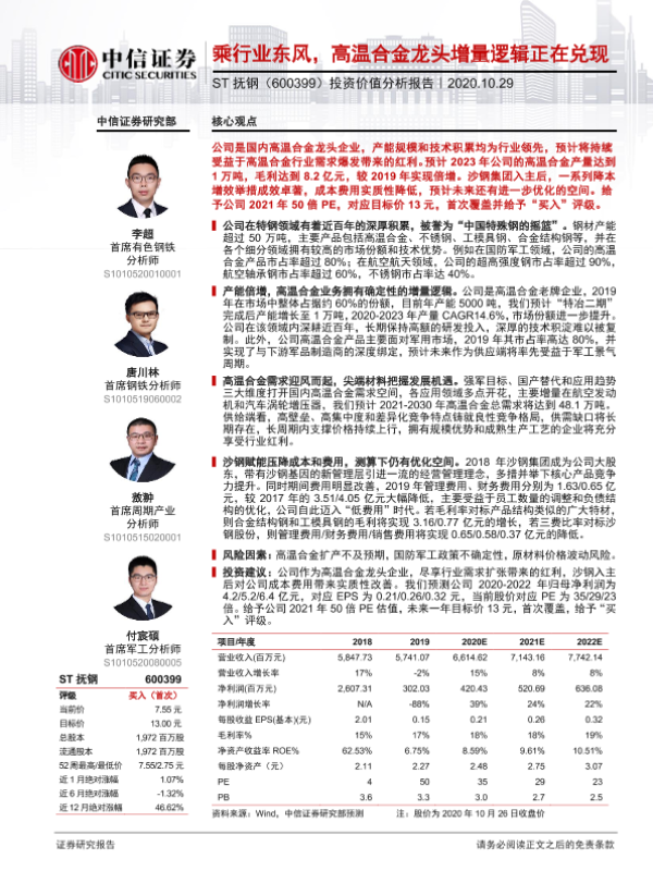【中信证券】【20201029】乘行业东风,高温合金龙头增量逻辑正在兑现-34页