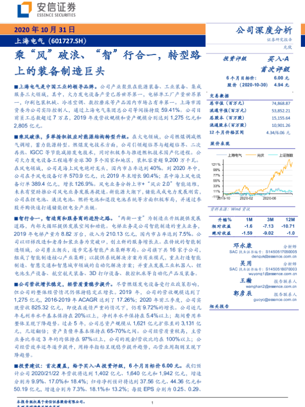 【安信证券】【20201031】乘“风”破浪、“智”行合一,转型路上的装备制造巨头-39页