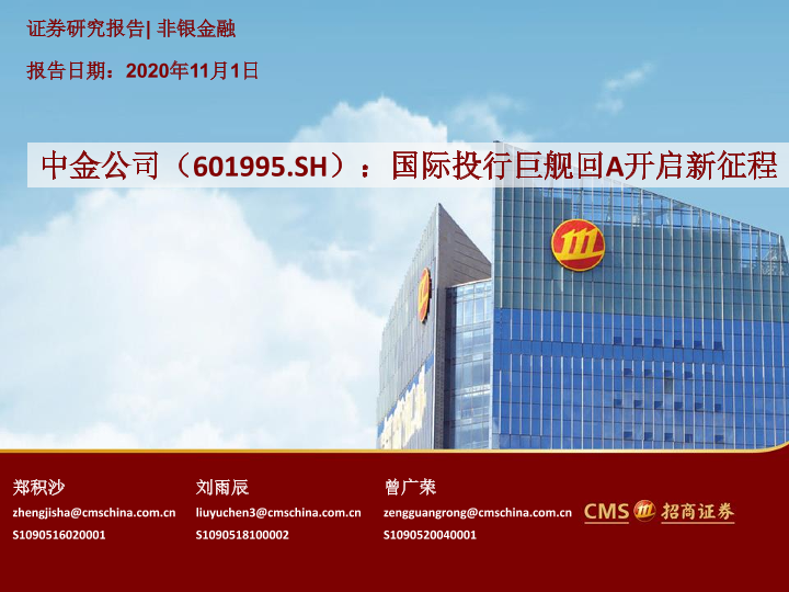 【海通证券】【20201101】中金公司:国际投行巨舰回A开启新征程-54页