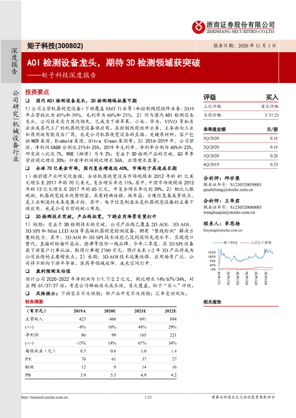 【浙商证券】【20201101】矩子科技深度报告:AOI 检测设备龙头,期待3D检测领域获突破-23页