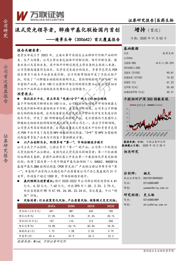 【万联证券】【20201102】20201102-万联证券-透景生命-300642.SZ-首次覆盖报告:流式荧光领导者,肺癌甲基化联检国内首创-23页