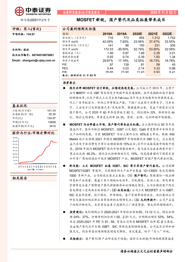 【中泰证券】【20201103】新洁能-605111.SH-MOSFET新锐,国产替代及品类拓展带来成长-23页