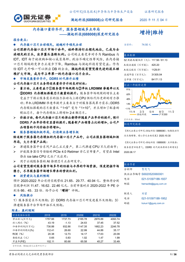 【国元证券】【20201104】内存接口量价齐升,服务器领域多点布局——澜起科技(688008)深度研究报告-36页