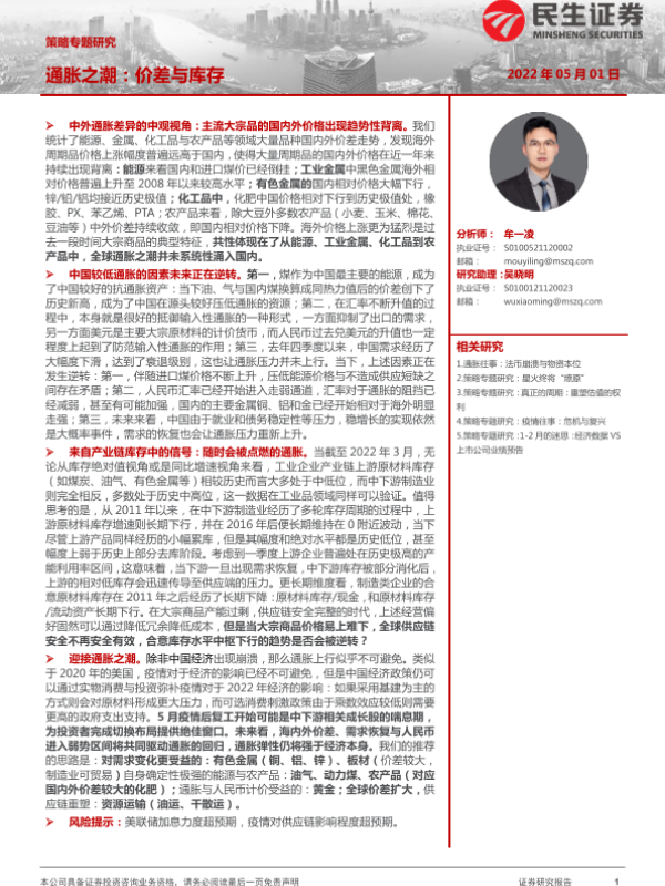 【民生证券】【20220501】策略专题研究:通胀之潮,价差与库存-20页