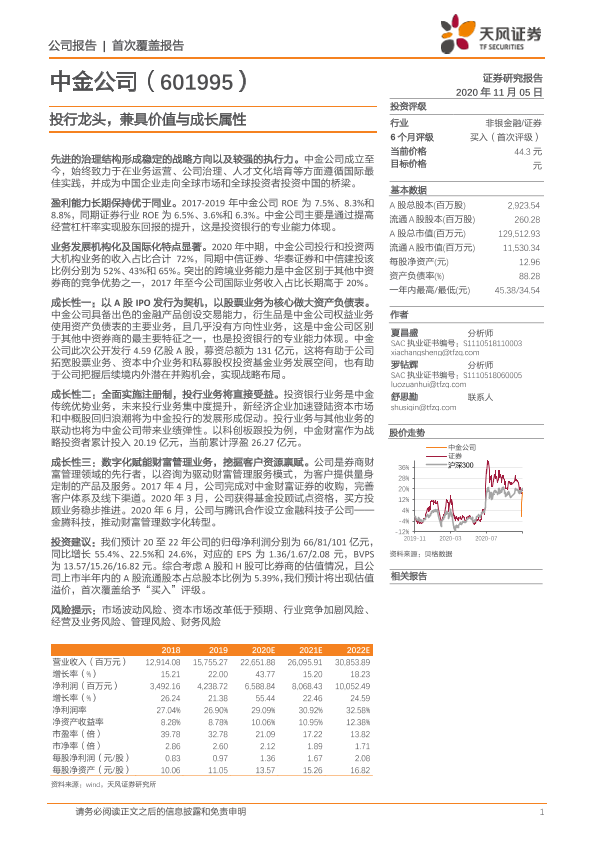 【天风证券】【20201105】20201105-天风证券-中金公司-601995.SH-投行龙头,兼具价值与成长属性-27页