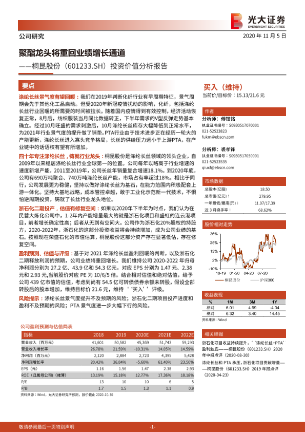 【光大证券】【20201105】20201105-光大证券-桐昆股份-601233.SH-资价值分析报告:聚酯龙头将重回业绩增长通道-28页