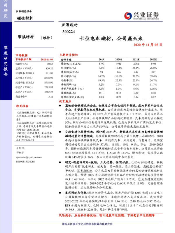 新能源 电动汽车 盈利预测 磁性材料 高性能钕铁硼