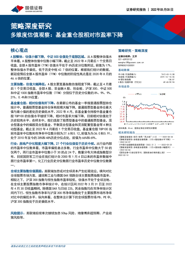 【国信证券】【20220505】策略深度研究:多维度估值观察,基金重仓股相对市盈率下降-34页