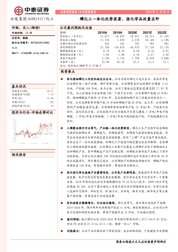【中泰证券】【20201106】中泰证券-兴发集团-磷化工一体化优势显著、湿化学品放量在即-29页