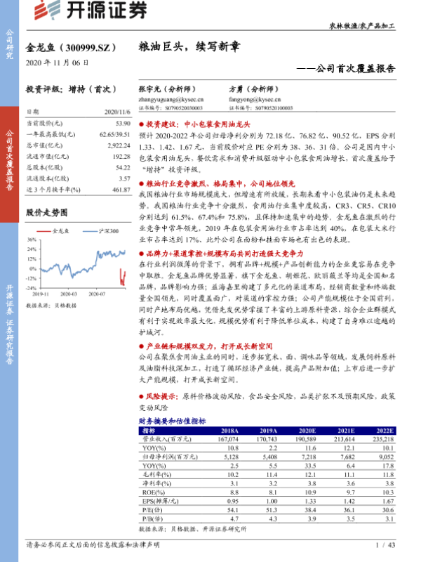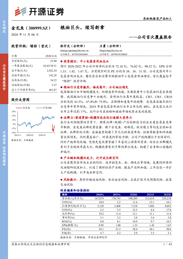 【开源证券】【20201106】金龙鱼-300999.SZ-公司首次覆盖报告:粮油巨头,续写新章-43页