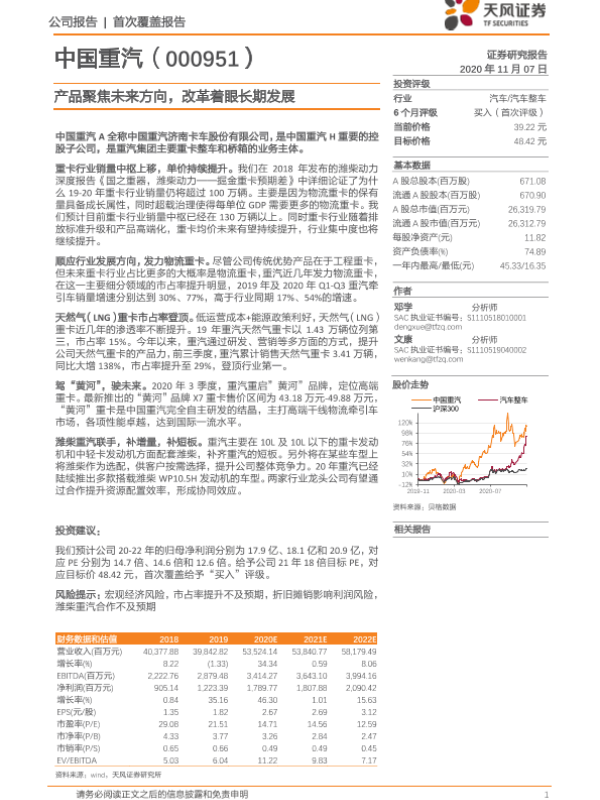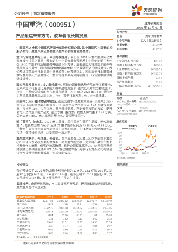 【天风证券】【20201107】中国重汽-000951.SZ-产品聚焦未来方向,改革着眼长期发展-31页