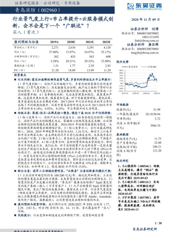 业绩预测 云服务 市场分析 消防行业 青鸟消防