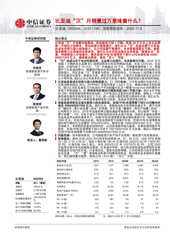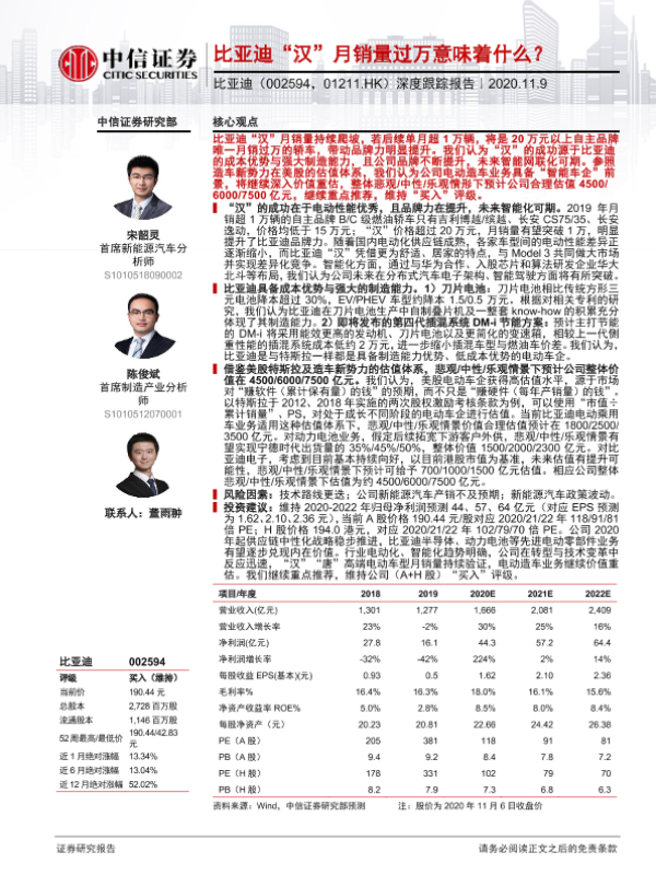 【中信证券】【20201109】20201109-中信证券-比亚迪-002594.SZ-深度跟踪报告:比亚迪“汉”月销量过万意味着什么?-16页