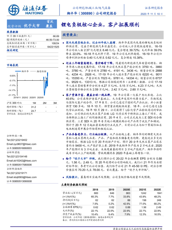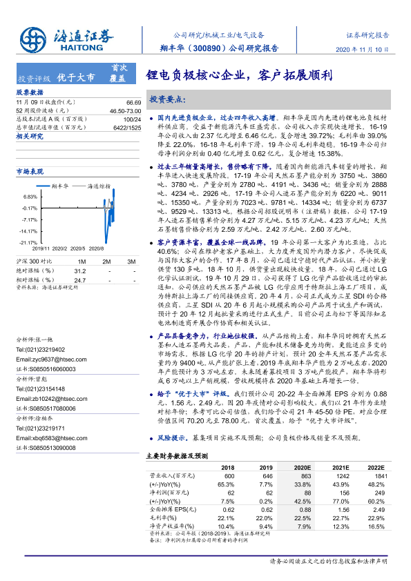 【海通证券】【20201110】20201110-海通证券-翔丰华-300890.SZ-公司研究报告:锂电负极核心企业,客户拓展顺利-20页