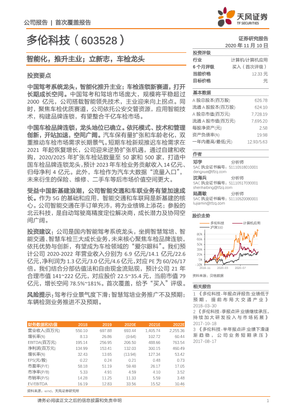 买入评级 多伦科技 智能化 计算机应用 车检连锁