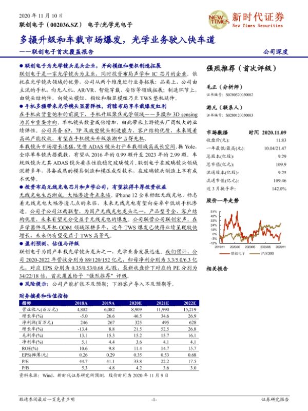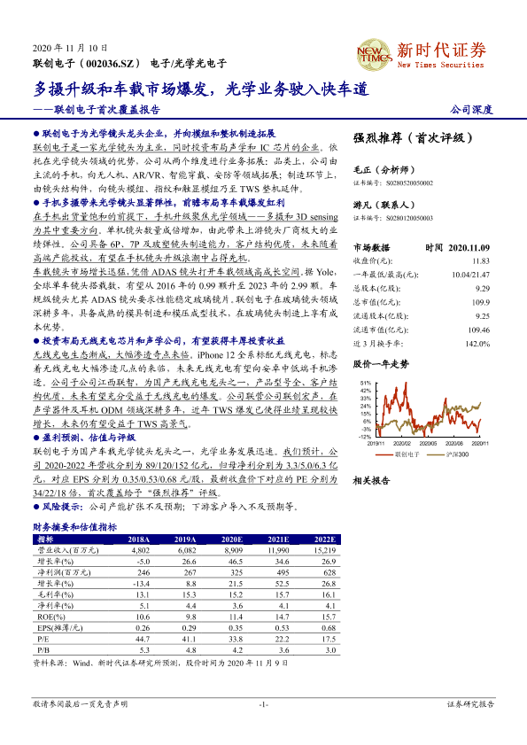 【新时代证券】【20201110】联创电子首次覆盖报告:多摄升级和车载市场爆发,光学业务驶入快车道-38页