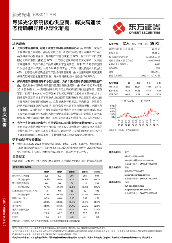 【东方证券】【20201113】新光光电-688011.SH-导弹光学系统核心供应商,解决高速状态精确制导和小型化难题-30页