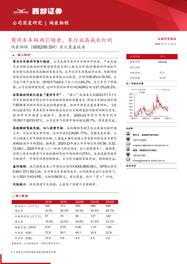 【西部证券】【20201112】20201112-西部证券-鸿泉物联-688288.SH-首次覆盖报告:商用车车联网引领者,享行业高成长红利-37页