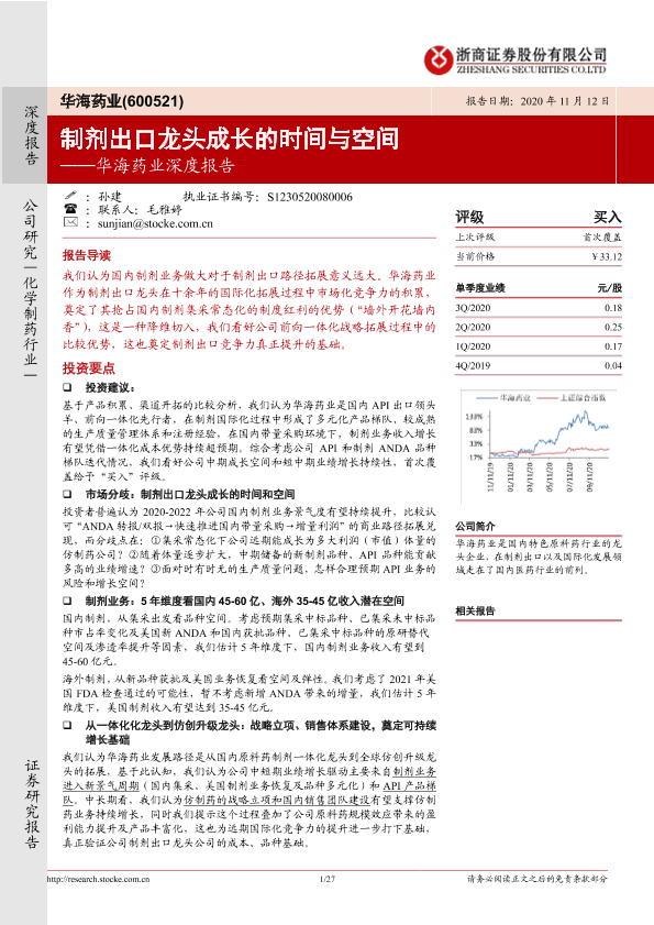 【浙商证券】【20201112】华海药业深度报告:制剂出口龙头成长的时间与空间-27页