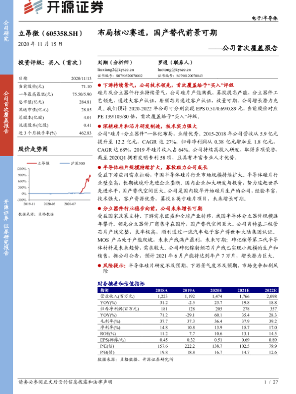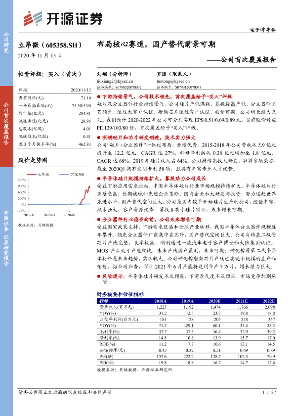【开源证券】【20201115】立昂微-公司首次覆盖报告:布局核心赛道,国产替代前景可期-27页