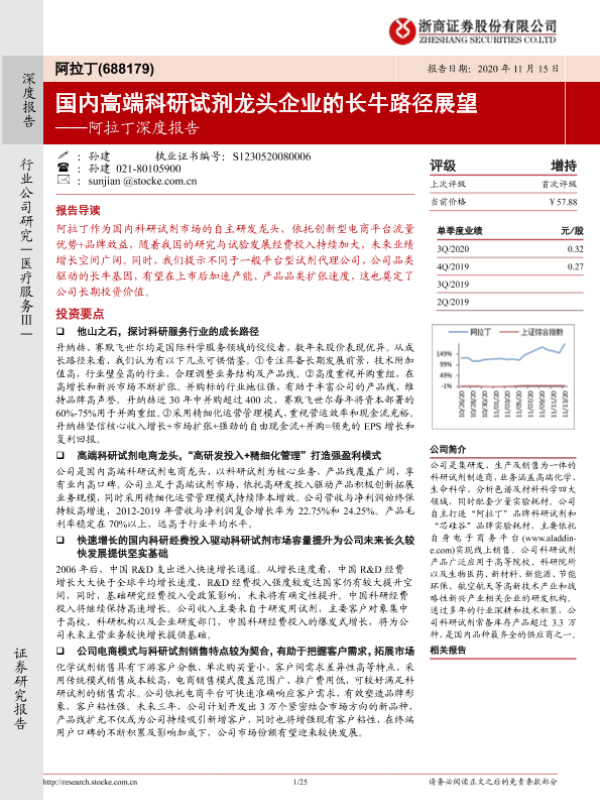 【浙商证券】【20201115】20201115-浙商证券-阿拉丁-688179.SH-阿拉丁深度报告:国内高端科研试剂龙头企业的长牛路径展望-25页