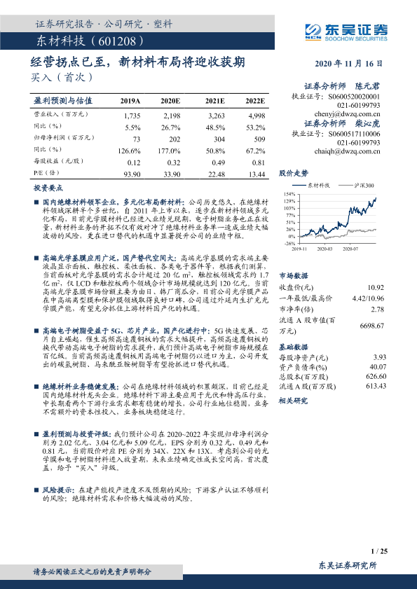 【东吴证券】【20201116】东材科技-601208.SH-经营拐点已至,新材料布局将迎收获期-25页