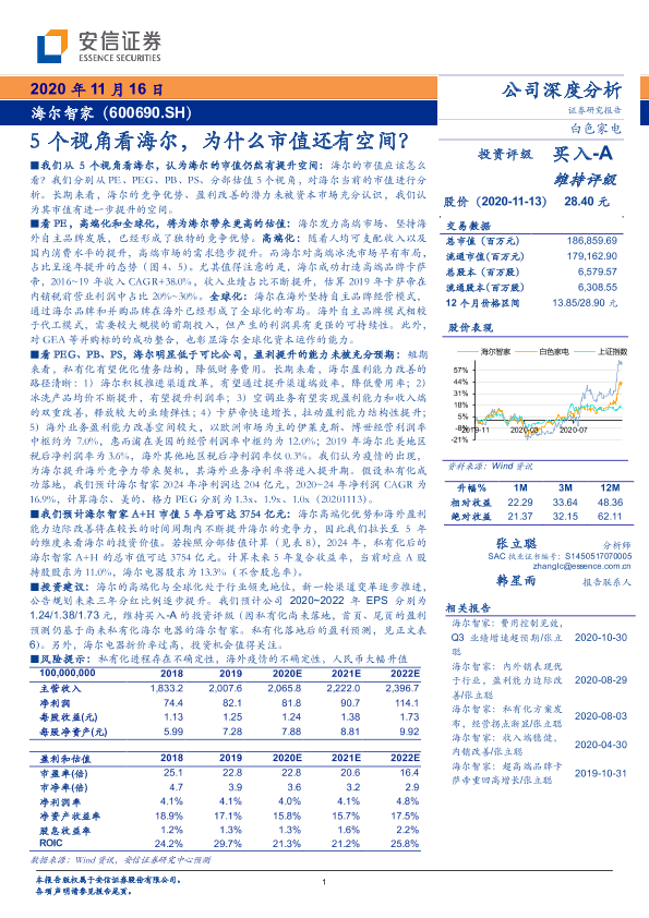 【安信证券】【20201116】5个视角看海尔,为什么市值还有空间?-24页