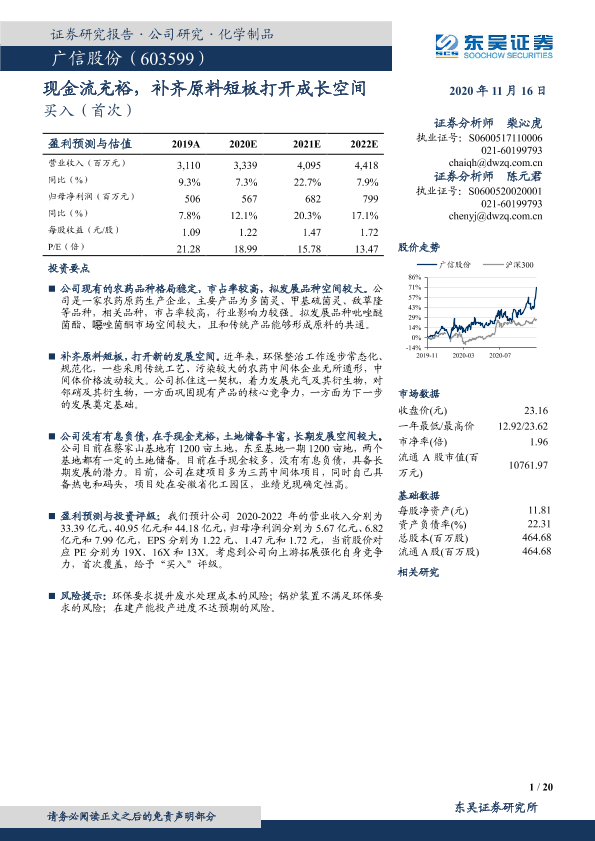 【东吴证券】【20201116】广信股份-603599.SH-现金流充裕,补齐原料短板打开成长空间-20页