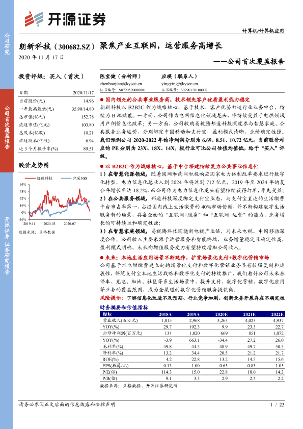 【开源证券】【20201117】20201117-开源证券-朗新科技-300682.SZ-公司首次覆盖报告:聚焦产业互联网,运营服务高增长-23页