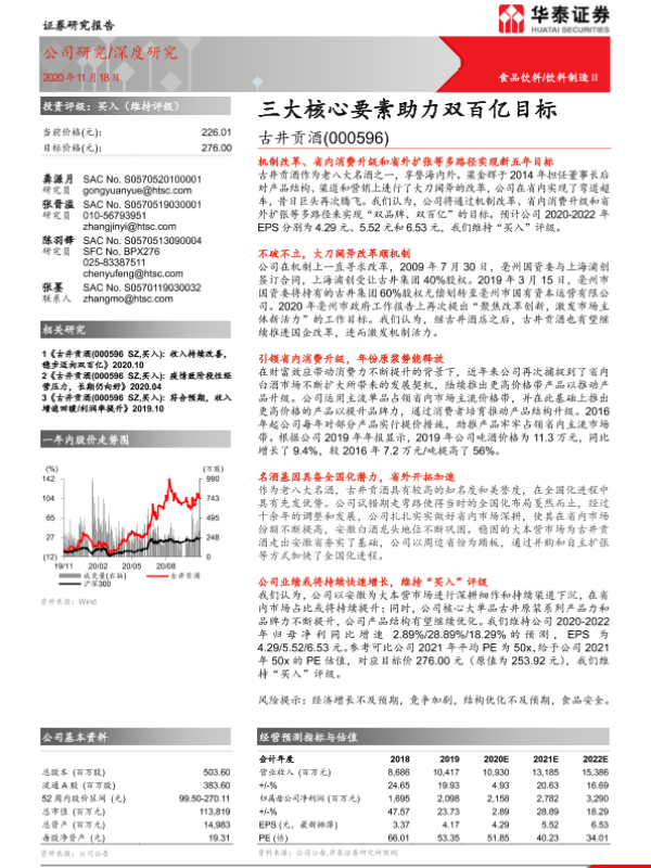 【华泰证券】【20201118】20201118-华泰证券-古井贡酒-000596.SZ-三大核心要素助力双百亿目标-25页