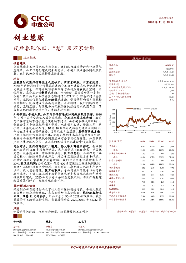 【中金公司】【20201118】创业慧康-疫后春风依旧,“慧”及万家健康-33页