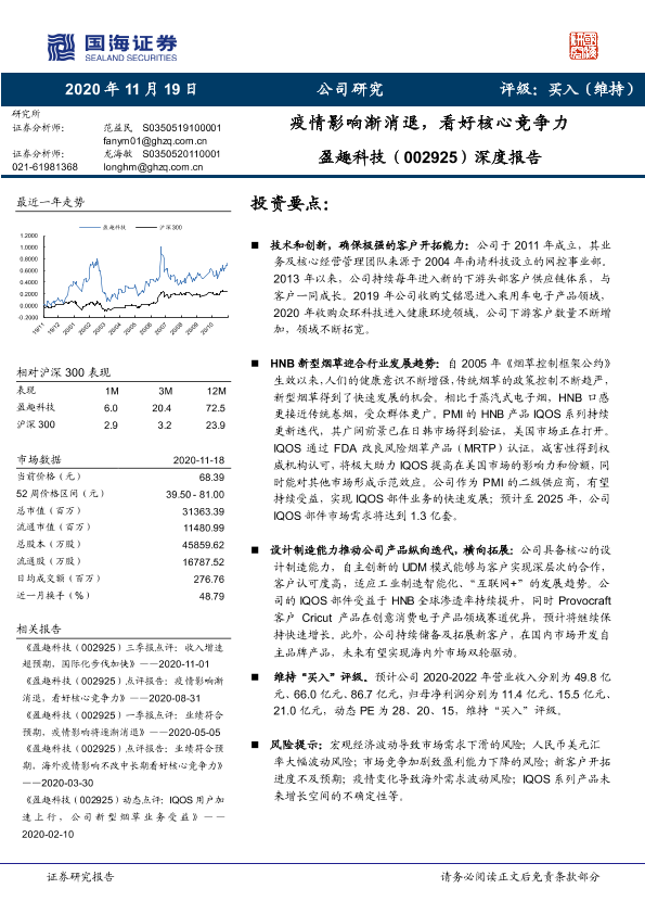 【国海证券】【20201119】20201119-国海证券-盈趣科技-002925.SZ-深度报告:疫情影响渐消退,看好核心竞争力-22页