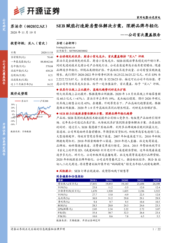 【开源证券】【20201119】公司首次覆盖报告:SEB赋能打造厨房整体解决方案,深耕品牌年轻化-22页