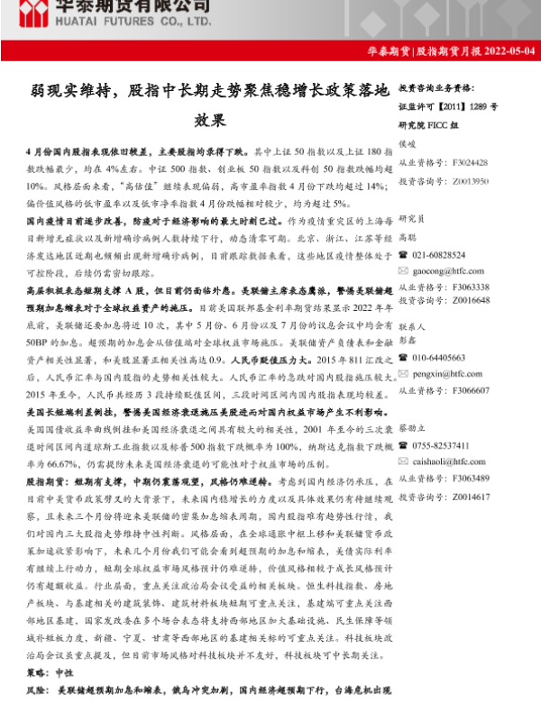 【华泰期货】【20220504】股指期货月报:弱现实维持,股指中长期走势聚焦稳增长政策落地效果-21页
