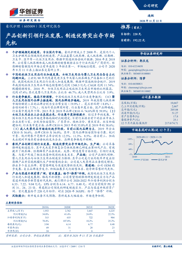 【华创证券】【20201122】20201122-华创证券-豪悦护理-605009.SH-深度研究报告:产品创新引领行业发展,制造优势突出夺市场先机-31页