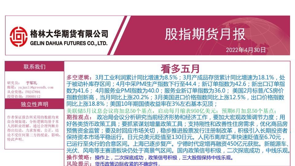 【格林大华期货】【20220430】股指期货月报:看多五月-49页