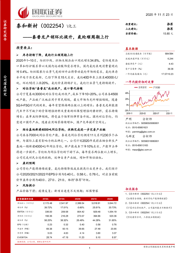 【国联证券】【20201123】泰普龙产销环比提升,氨纶顺周期上行-23页