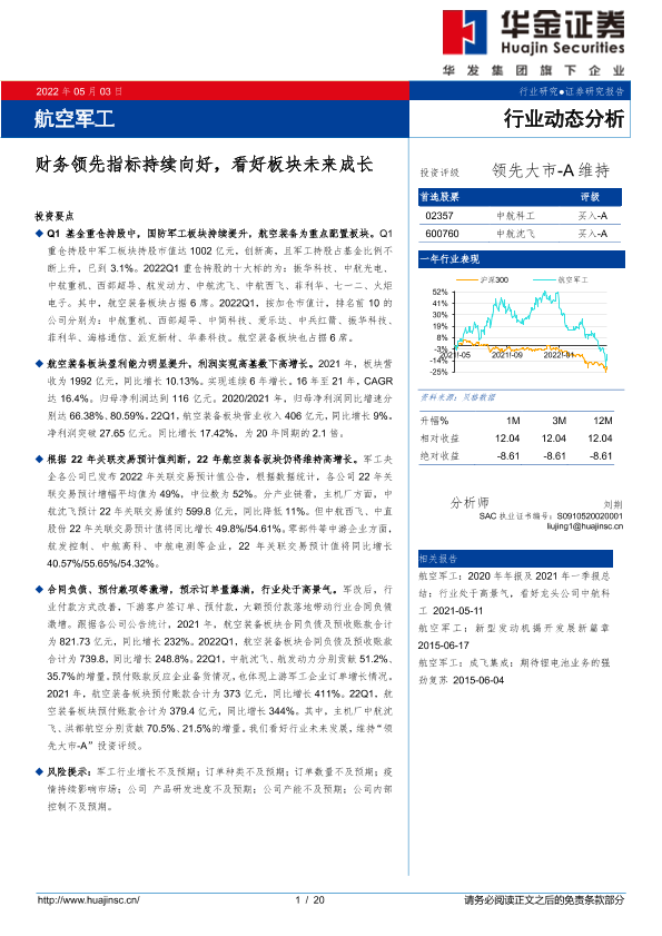 【华金证券】【20220503】航空军工行业:财务领先指标持续向好,看好板块未来成长-20页