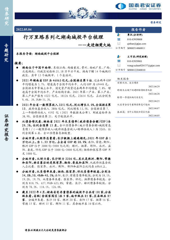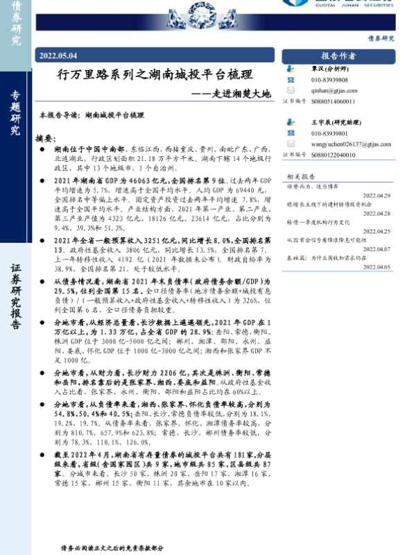 【国泰君安证券】【20220504】行万里路系列之湖南城投平台梳理:走进湘楚大地-21页