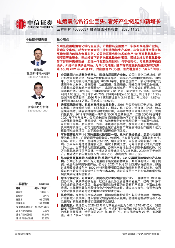 【中信证券】【20201123】三祥新材-603663.SH-投资价值分析报告:电熔氧化锆行业巨头,看好产业链延伸新增长-37页