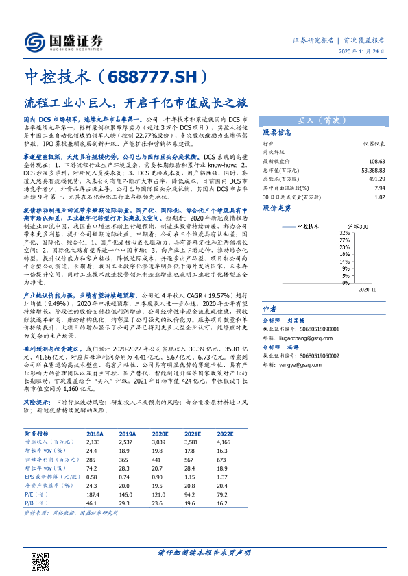【国盛证券】【20201124】中控技术(688777.SH):流程工业小巨人,开启千亿市值成长之旅-31页