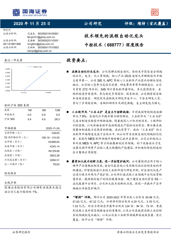 【国海证券】【20201125】20201125-国海证券-中控技术-688777.SH-深度报告:技术领先的流程自动化龙头-26页