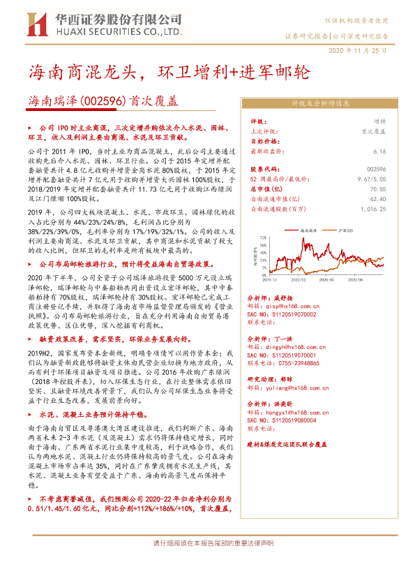 【华西证券】【20201125】20201125-华西证券-海南瑞泽-002596.SZ-首次覆盖:海南商混龙头,环卫增利+进军邮轮-21页