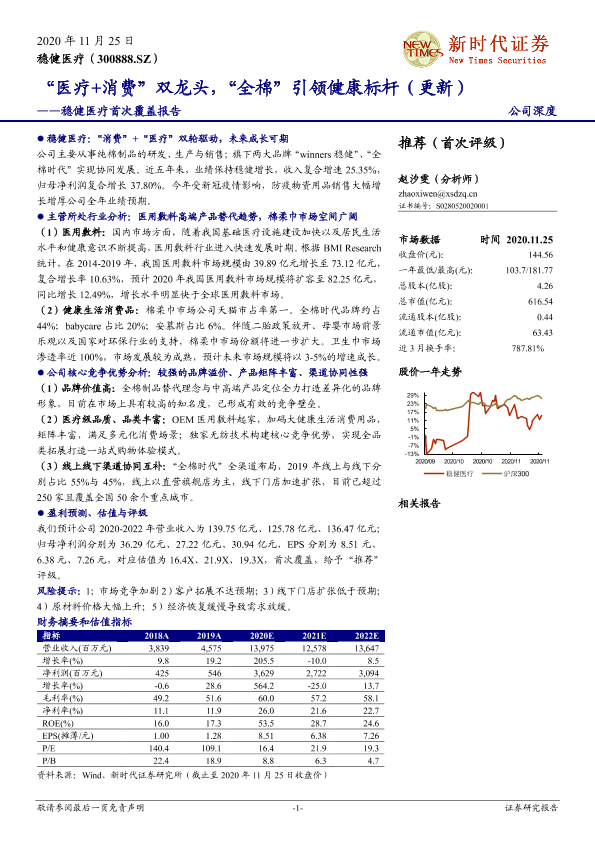 【新时代证券】【20201125】稳健医疗首次覆盖报告:“医疗+消费”双龙头,“全棉”引领健康标杆-31页