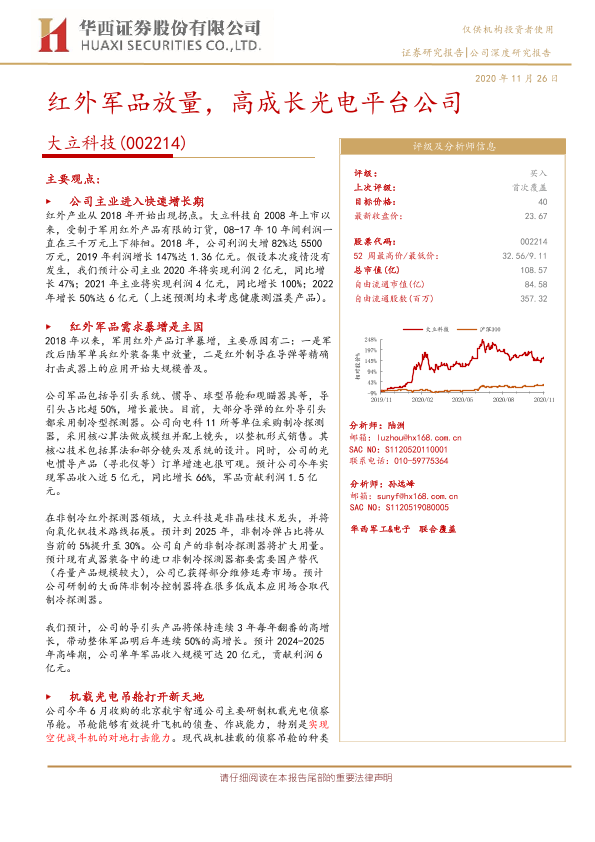 【华西证券】【20201126】大立科技-002214.SZ-红外军品放量,高成长光电平台公司-25页