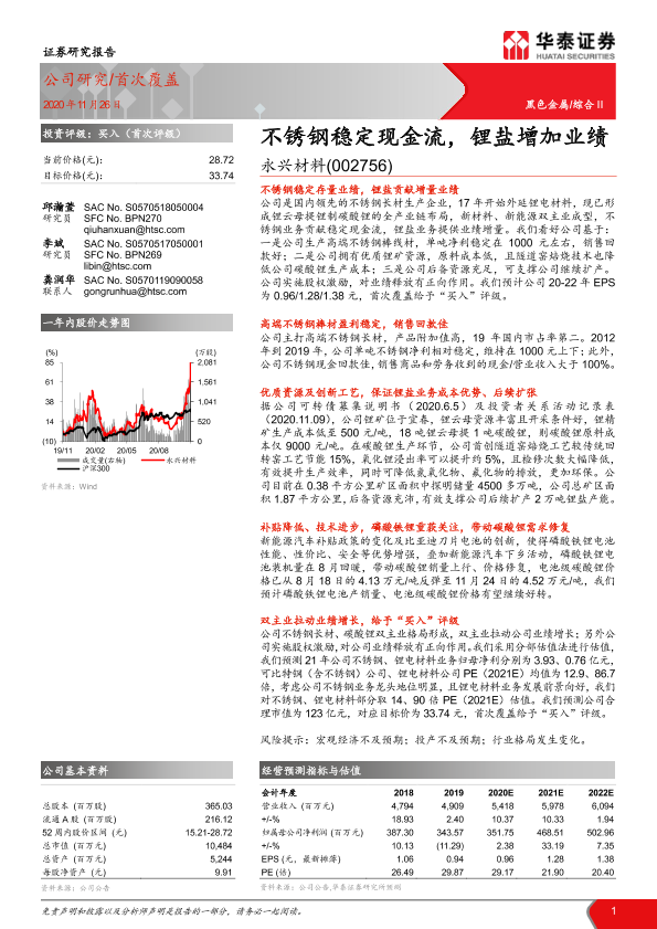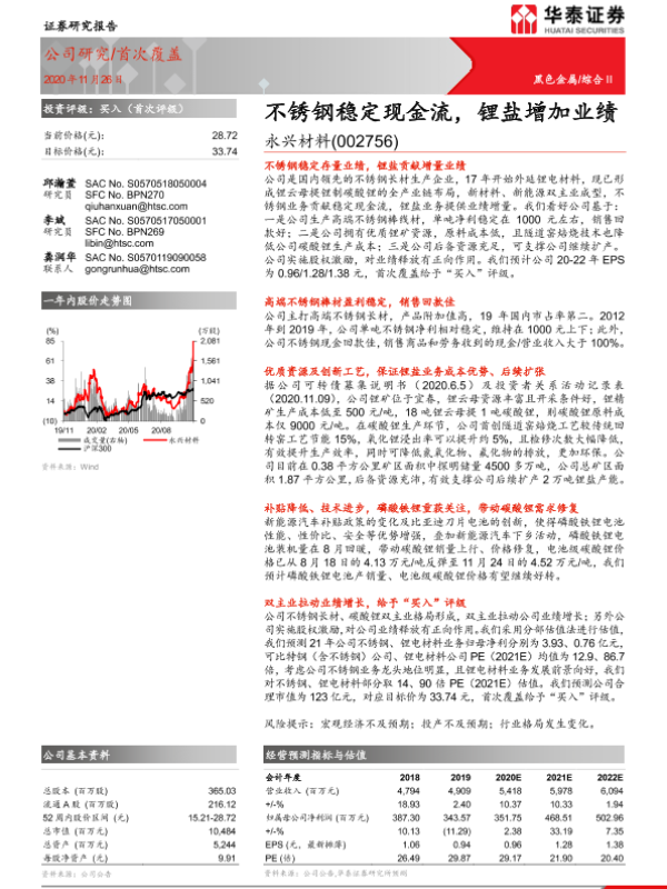 【华泰证券】【20201126】20201126-华泰证券-永兴材料-002756.SZ-不锈钢稳定现金流,锂盐增加业绩-25页