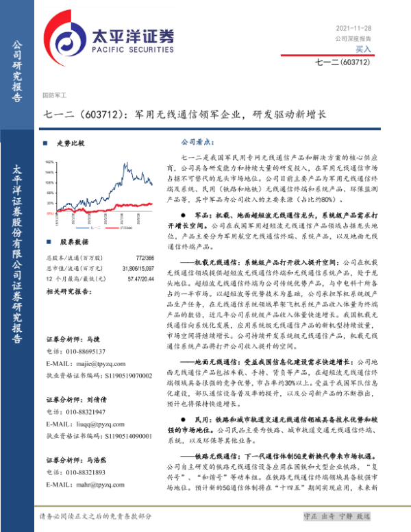 【太平洋证券】【20201128】七一二(603712):军用无线通信领军企业,研发驱动新增长-28页