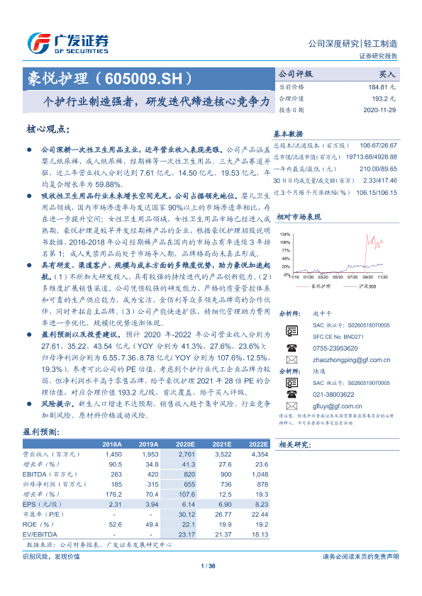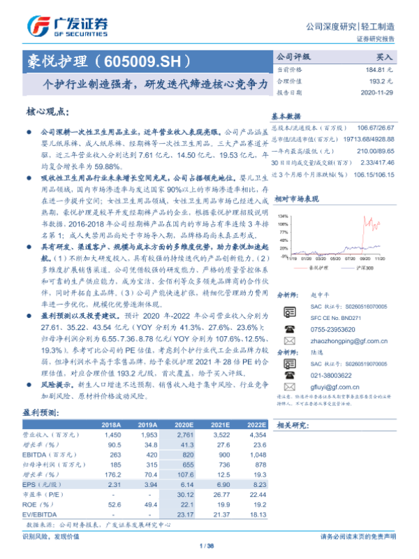 【广发证券】【20201129】豪悦护理(605009.SH):个护行业制造强者,研发迭代缔造核心竞争力-38页