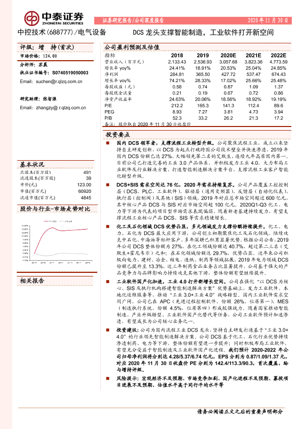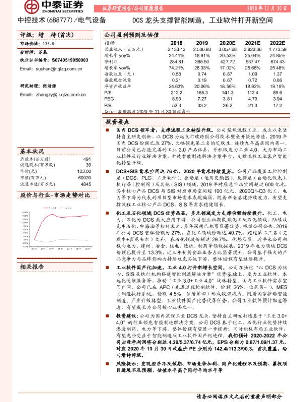 【中泰证券】【20201130】中泰证券-中控技术-DCS龙头支撑智能制造,工业软件打开新空间-27页