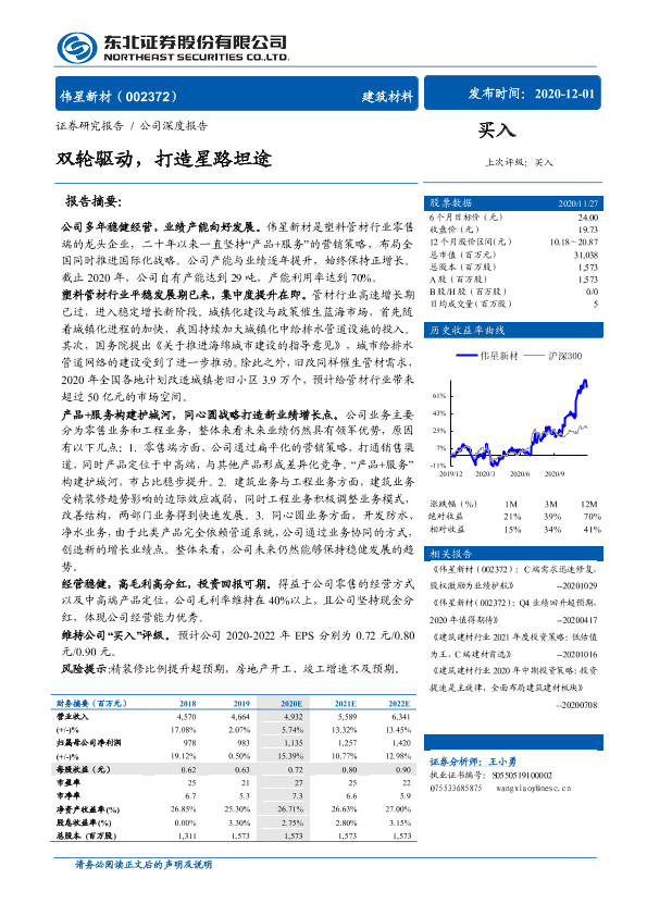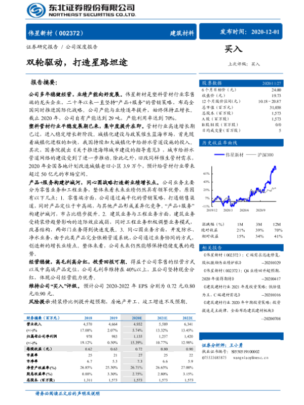 伟星新材 市场前景 行业分析 财务分析 塑料管材